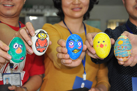 五月五日,立夏。一場(chǎng)生動(dòng)有趣的畫(huà)蛋比賽在總公司辦公區(qū)舉行。分別來(lái)自各部門(mén)的十多名參賽選手,各人領(lǐng)取一只白色大鵝蛋,用公司提供的水彩筆在蛋上現(xiàn)場(chǎng)作創(chuàng)意畫(huà)?,F(xiàn)場(chǎng)還邀約員工20名前來(lái)觀摩選評(píng)。通過(guò)民主評(píng)選,最終選出了五只創(chuàng)意作品蛋,并頒發(fā)了精美禮品。