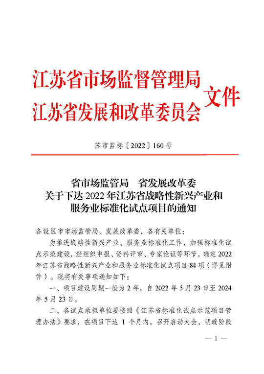 江蘇省戰(zhàn)略性新興產(chǎn)業(yè)標準化試點項目由省市場監(jiān)督管理局和省發(fā)展和改革委員會共同組織。項目對申報單位有著明確的要求:市場占有率和經(jīng)濟效益排名位于本地區(qū)同行業(yè)前列,具有良好的發(fā)展?jié)摿Γ邆浣y(tǒng)籌技術創(chuàng)新、標準研制和產(chǎn)業(yè)化的能力等等。