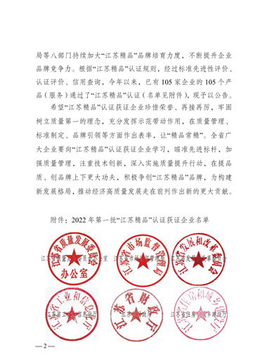 “江蘇精品”是江蘇省為推動(dòng)形成一批自主創(chuàng)新、品質(zhì)高端、服務(wù)優(yōu)質(zhì)、信譽(yù)過(guò)硬、市場(chǎng)公認(rèn)的“江蘇精品”品牌群體,以行業(yè)龍頭骨干、“專精特新”和“單項(xiàng)冠軍”等企業(yè)為主體認(rèn)證對(duì)象,參照國(guó)際慣例、運(yùn)用市場(chǎng)機(jī)制,由江蘇省市場(chǎng)監(jiān)管局會(huì)同省發(fā)改委等七部門開展的重點(diǎn)認(rèn)證工作。