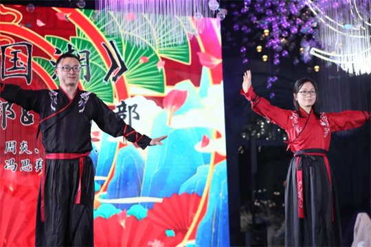 有的飄然入場,身姿曼妙,旋轉(zhuǎn)間,裙擺飄揚;有的如魚戲蓮葉,輕歌曼舞間,充滿了江南水鄉(xiāng)風(fēng)情;有的如AI智能,突然定格又突然啟動,動靜之間,盡顯機械之美;有的粉墨登場,扮相驚艷四座,長袖飛舞間,國粹大家風(fēng)范躍然臺上……?