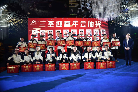會場的三圣人很快樂,但也不能忘了依然在各個工地中堅守崗位的其他同事。通過現(xiàn)場視頻聯(lián)系,也向他們送去了新春的祝福。