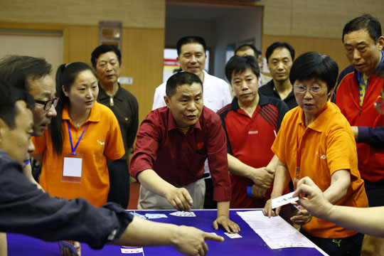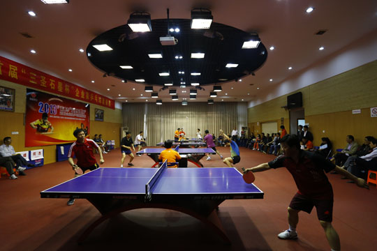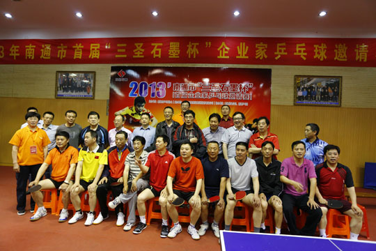5月18日下午1點(diǎn)鐘,初夏的南通籠罩在蒙蒙細(xì)雨之中,在市供電公司的乒乓球館里,人頭攢動(dòng),人聲鼎沸,2013年南通市首屆“三圣石墨杯”企業(yè)家乒乓球邀請(qǐng)賽在這里隆重舉辦。比賽現(xiàn)場集聚了相當(dāng)實(shí)力的16企業(yè)乒乓球精英,更有一批通城頂級(jí)教練、陪練現(xiàn)身賽場,組成陣容強(qiáng)大的“后援團(tuán)”,場面之壯觀、競爭之激烈成為南通乒乓球賽史的又一新標(biāo)桿。